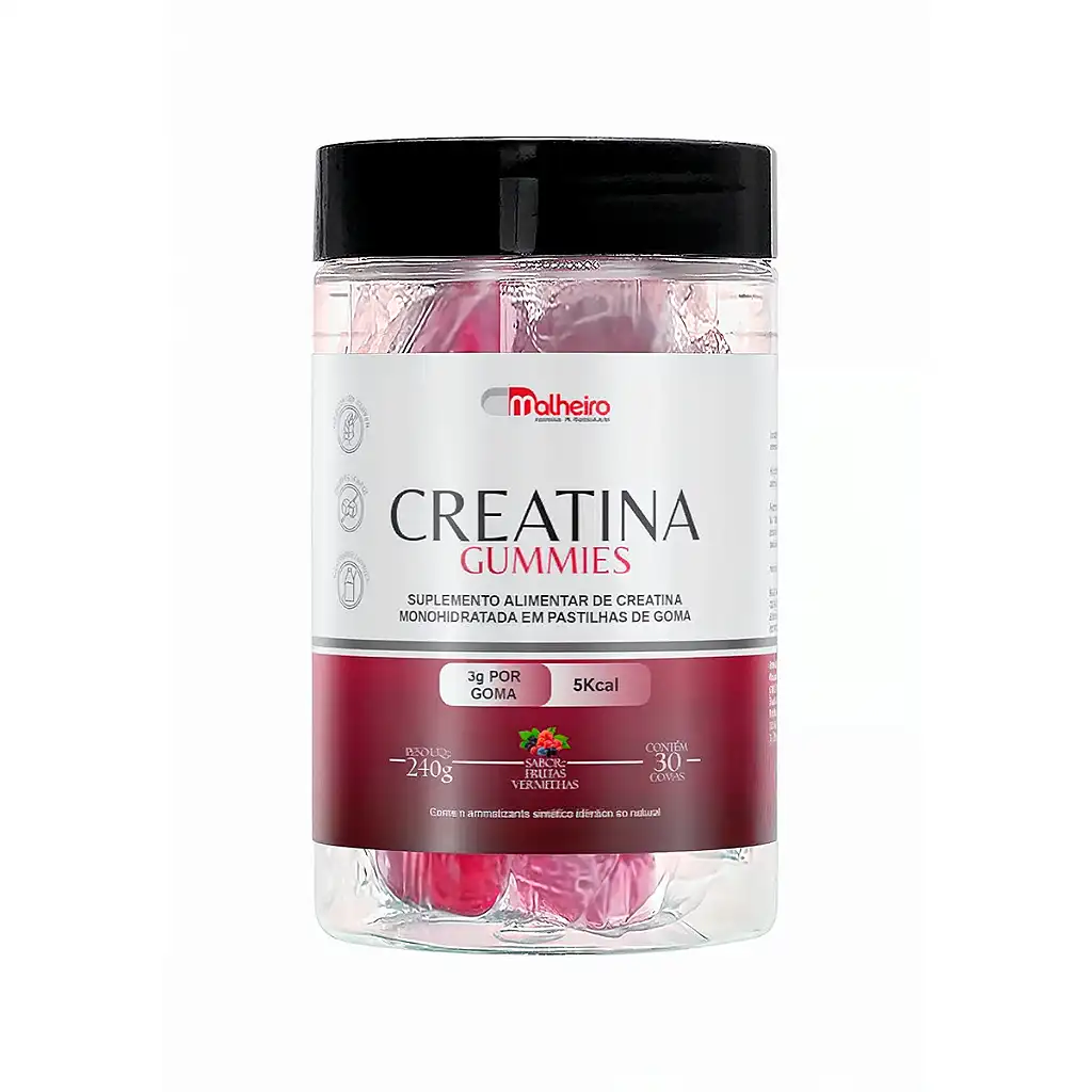 A Creatina em goma sabor frutas vermelhas oferece praticidade, sabor agradável e a mesma eficácia da creatina em pó. Cada goma contém 3 g de creatina monohidratada, garantindo suporte para atletas, praticantes de atividade física e pessoas que buscam preservar a massa muscular e a saúde cerebral ao longo da vida.