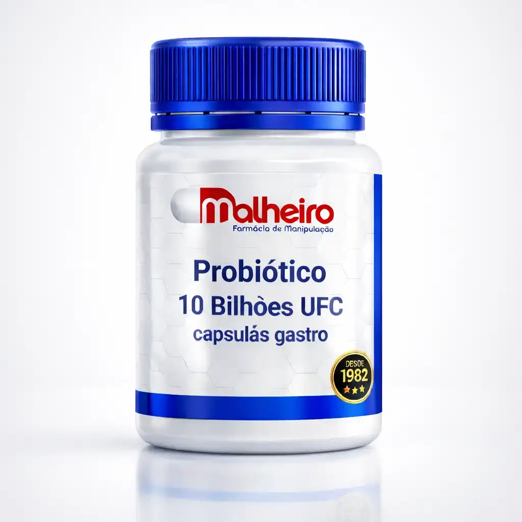 O Probiótico 10 bilhões da Farmácia Malheiro em cápsulas gastro resistentes foi desenvolvido para auxiliar na manutenção da flora intestinal saudável. A fórmula reúne diferentes cepas de bactérias benéficas que atuam de forma complementar para contribuir com o equilíbrio da microbiota intestinal.