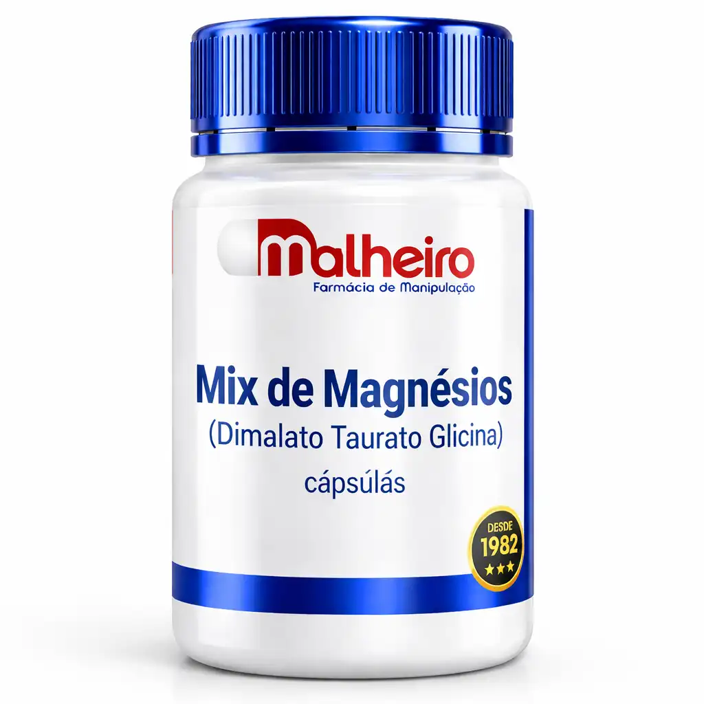 O Mix de Magnésio 540 mg é uma fórmula manipulada que combina três formas biodisponíveis de magnésio: Magnésio Malato, Magnésio Glicina (glicinato) e Magnésio Taurato.