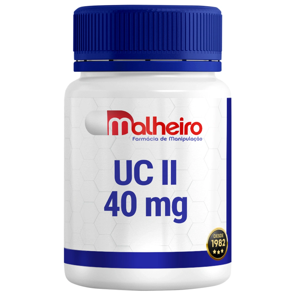 - UC II 40 mg por cápsula – colágeno tipo II não desnaturado, com comprovação científica de eficácia.